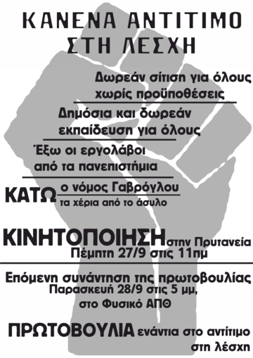 Επόμενη συνάντηση της πρωτοβουλίας την Παρασκευή 28/9 στις 17.00 , στο Φυσικό ΑΠΘ
