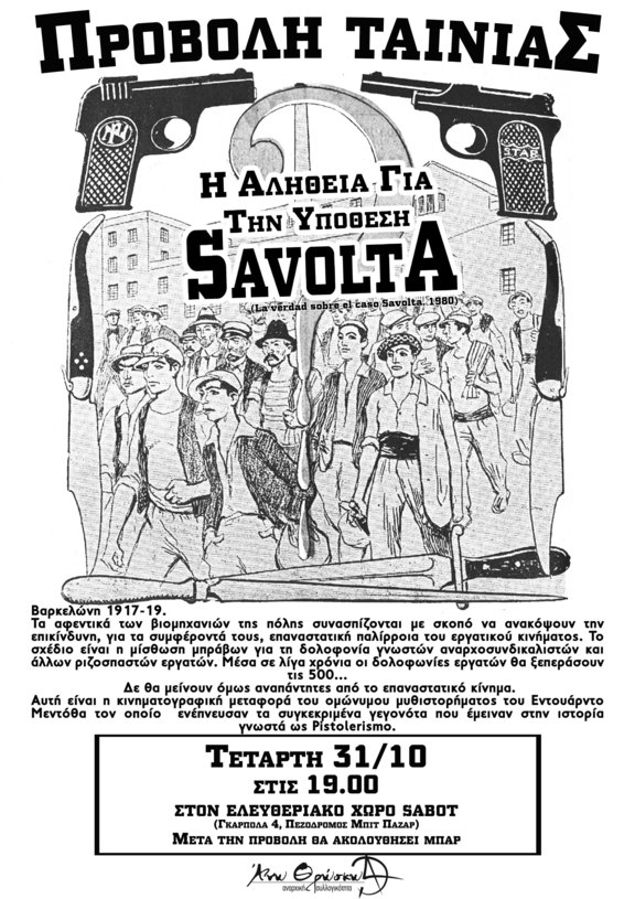(αναβάλλεται) Προβολή της ταινίας "Η αλήθεια για την υπόθεση Savolta" και bar