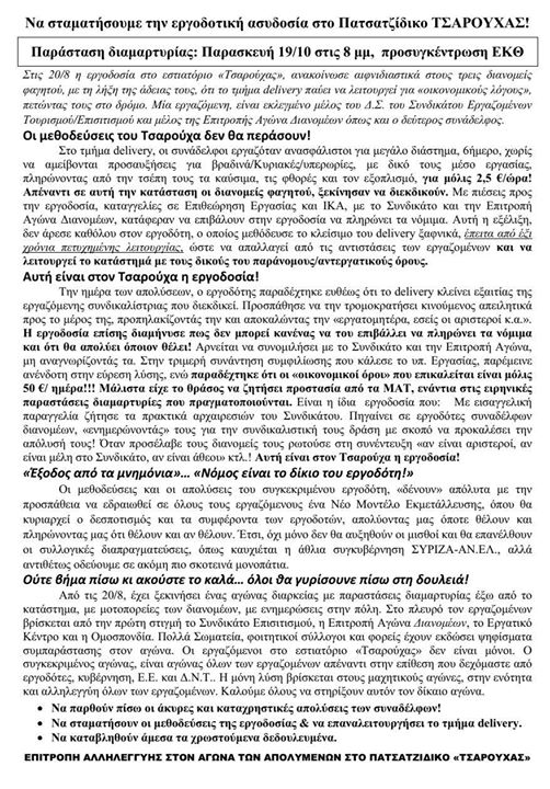 Παρασκευή στις 8 το απόγευμα συγκέντρωση στο Εργατικό Κέντρο (Ολύμπου και Αριστοτέλους 32 γωνία).
