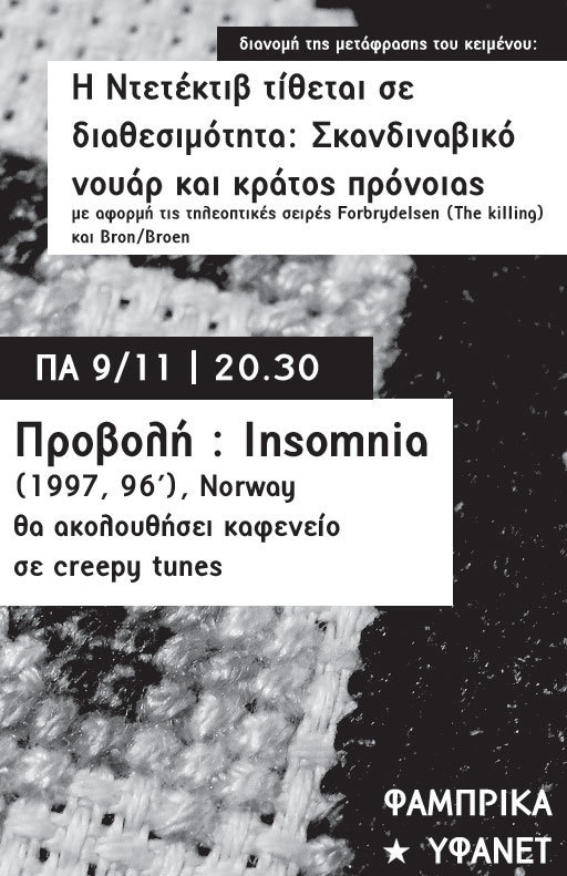 Προβολή: Insomnia (1997) + συζήτηση + καφενείο
