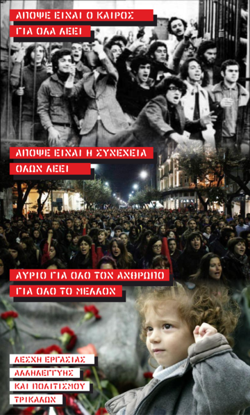 Όλες κι όλοι στη συγκέντρωση και την πορεία για την επέτειο της εξέγερσης του Πολυτεχνείου, το Σάββατο 17.11. στις 6:00 μ.μ. στην πλατεία Ρήγα Φεραίου.
