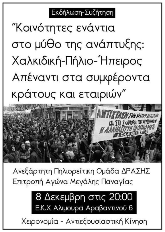 Εκδήλωση-Συζήτηση"Κοινότητες ενάντια στο μύθο της ανάπτυξης: Χαλκιδική-Πήλιο-Ήπειρος απέναντι στα συμφέροντα κράτους και εταιριών"
