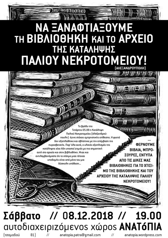 Μαζεύουμε βιβλία, έντυπα και μπροσούρες για το Π.Νεκροτομείο