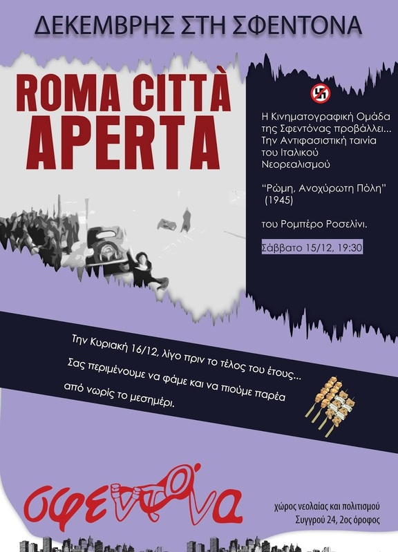 Προβολή της αντιφασιστικής ταινίας "Ρώμη, Ανοχύρωτη Πόλη"
