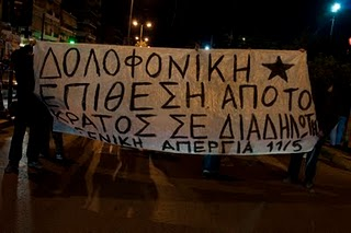 Καταγγέλλουμε όλα τα μέλη της Ελληνικής Κυβέρνησης και τον πρωθυπουργό της χώρας για την δολοφονική απόπειρα ενάντια στον συγκεκριμένο συμπολίτη μας που είναι σε βαριά κατάσταση και κινδυνεύει η ζωή του, αλλά και ενάντια σε όλους τους άλλους διαδηλωτές.