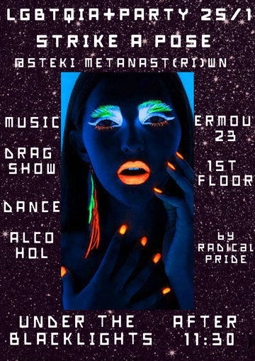 Θέλαμε ένα πάρτυ φτηνό, ασφαλές, glamorous, θέλαμε drag show, χορό μέχρι το πρωί, blacklights και πολύ γκλίτερ, οπότε το φτιάξαμε. Στις 25Ιανουαρίου διασκεδάζουμε με τον καλύτερο τρόπο που ξέρουμε, συλλογικά και από τα κάτω. Οπότε βάλτε τα καλά σας (και τα φωσφορούχα σας) και να είστε όλ@ εκεί. ♥
