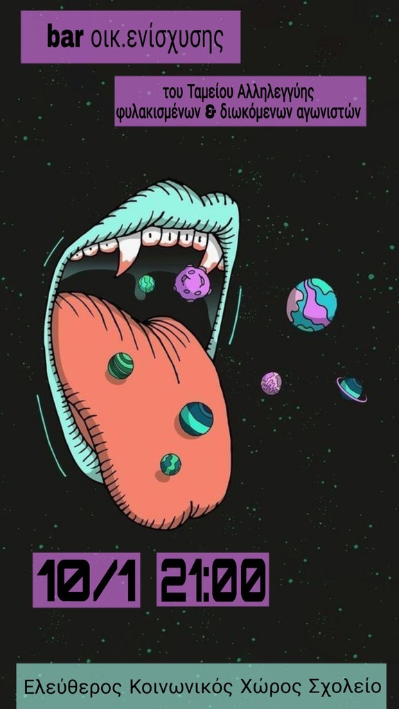 Μηνιαίο Μπαρ οικονομικής ενίσχυσης για το Ταμείο Αλληλεγγύης φυλακισμένων και διωκόμενων αγωνιστών στον εκχ Σχολείο