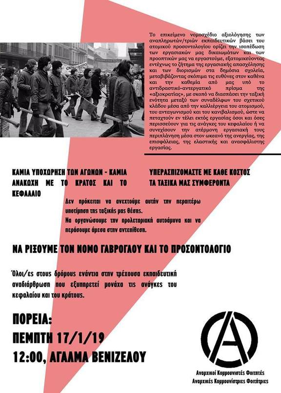 Όλοι/ες στους δρόμους ενάντια στην τρέχουσα εκπαιδευτική αναδιάρθρωση που εξυπηρετεί μονάχα τις ανάγκες του κεφαλαίου και του κράτους.