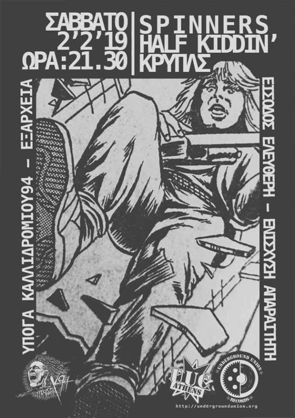 Σάββατο 2 του μηνού Live στο υπόγειο με τους Κρυπλς, Half Kiddin' και Spinners!