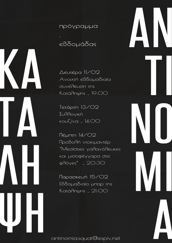 Δευτέρα 11/02 Ανοιχτή εβδομαδιαία συνέλευση της Κατάληψης _ 19:00