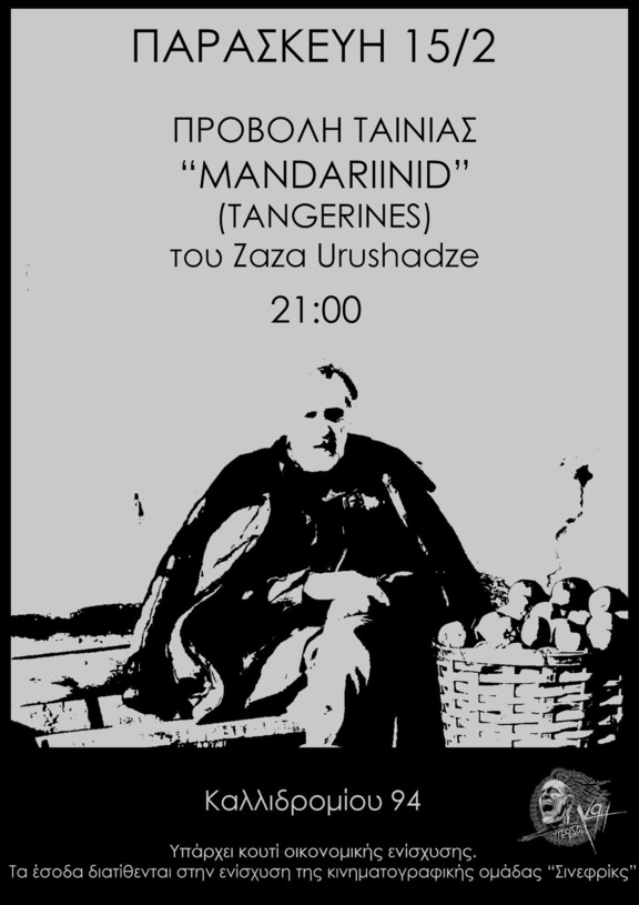 Παρασκευή 15/2 προβολή της ταινίας Mandariinid (Tangerines) του Zaza Urushadze.
