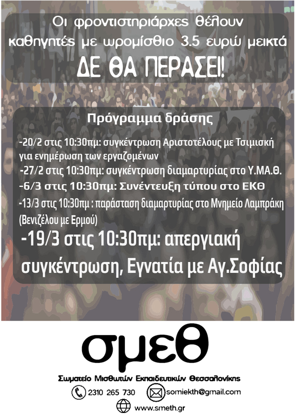 ΟΛΟΙ ΣΤΗΝ ΑΠΕΡΓΙΑΚΗ ΣΥΓΚΕΝΤΡΩΣΗ 19/3 στις 10:30 Αγ.Σοφίας-Εγνατία
