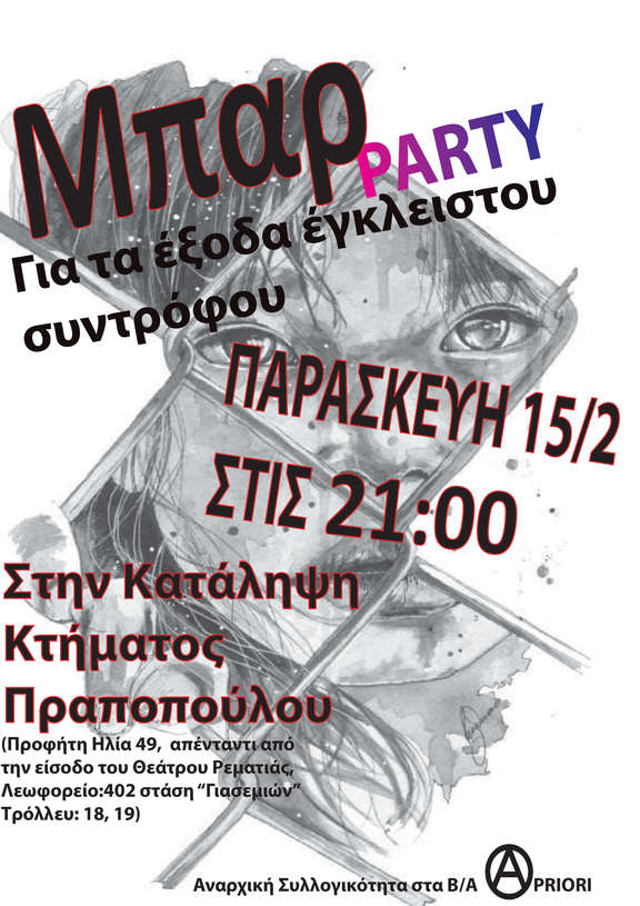 -Μπαρ - Party για τα έξοδα έγκλειστου συντρόφου στην Κατάληψη Κτήματος Πραποπούλου από την Αναρχική Συλλογικότητα στα Β/Α " A priori "