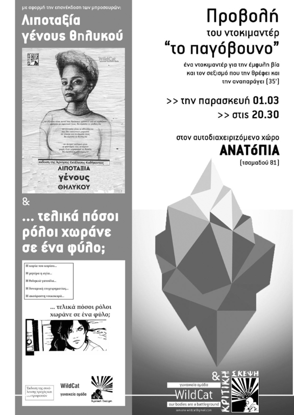 …στις 20.30 στον αυτοδιαχειριζόμενο χώρο ΑΝΑΤόΠΙΑ από τη γυναικεία ομάδα wildcat και το εγχείρημα της κριτικής σκέψης (με αφορμή την επανέκδοση των μπροσουρών «λιποταξία γένους θηλυκού» και «…τελικά πόσοι ρόλοι χωράνε σε ένα φύλο;»).