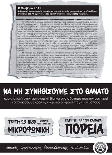 Όταν ένας θάνατος δεν προκαλεί έκπληξη, σημαίνει ότι ένα μέρος της κοινωνίας έχει συνηθίσει και έχει αποδεχτεί τη βία. Βία που προέρχεται από τα πάνω και διαχέεται προς τα κάτω. Οι δολοφονίες από μπάτσους και φασίστες δεν αποτελούν μεμονωμένα περιστατικά. Η δικαιοδοσία που επιτρέπει το καπιταλιστικό και εξουσιαστικό σύστημα να έχουν ορισμένοι, οπλίζει το χέρι τους και αφαιρεί μια ανθρώπινη ζωή με τέτοια ευκολία σαν να είναι κάτι φυσιολογικό και κοινωνικά αποδεκτό. Η Ελένη Τοπαλούδη δολοφονήθηκε από τους βιαστές της, ο Petrit Zifle από φασίστα αφεντικό και ο Εμπουκά από την Ελληνική Αστυνομία. Πατριαρχία, εθνικισμός και ρατσισμός, τα συστατικά του κοινωνικού εκφασισμού οπλίζουν τα χέρια του εκάστοτε δολοφόνου την ίδια στιγμή που η «κυβέρνηση της αριστεράς», ως η άλλη όψη του σύγχρονου καπιταλιστικού συστήματος, δεν δίνει καμία αξία στις ανθρώπινες ζωές, απονοηματοδοτώντας και ευτελίζοντας τις αξίες της αλληλεγγύης, του ανθρωπισμού και της ισότητας.