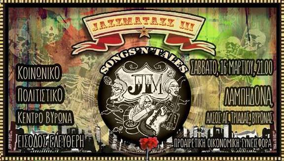 JAZZMATAZZ III: "SONGS 'N' TALES" | Σάββατο 16 Μαρτίου 2019, 9.00 μμ | Λαμπηδόνα (Δασύλλιο Αγ. Τριάδας, Βύρωνας) | Είσοδος ελεύθερη, Προαιρετική οικονομική συνεισφορά