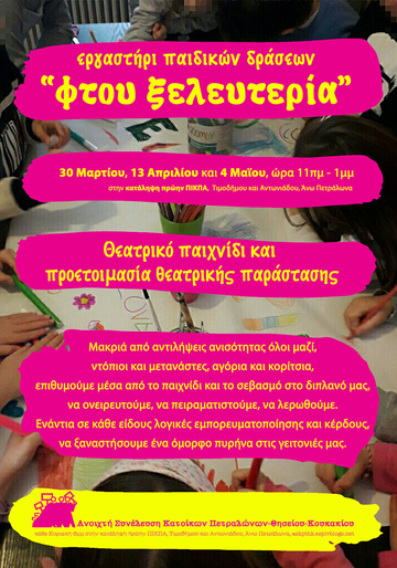 Εργαστήρι παιδικών δράσεων «φτου ξελευτερία» στην κατάληψη πρώην ΠΙΚΠΑ