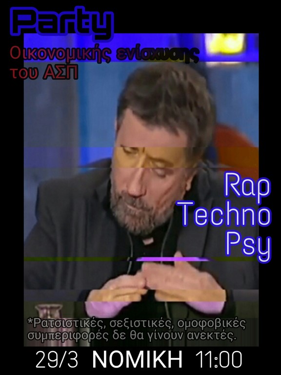 Το Πάρτυ στις 30/3 του ΑΣΠ μεταφέρεται για την Παρασκευή 29/3 στην Νομική.