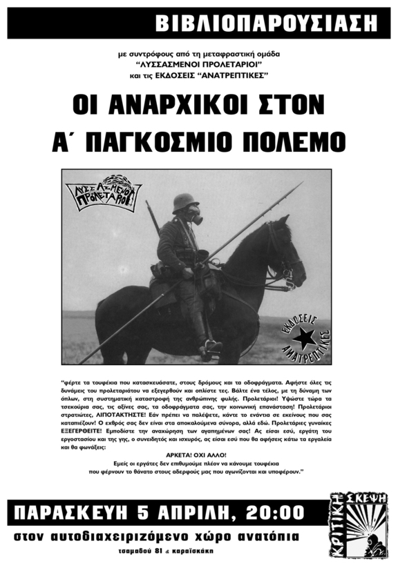 παρουσίαση του βιβλίου «Οι αναρχικοί στον Α’ παγκόσμιο πόλεμο»