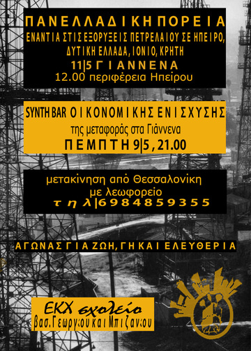 Μπροστά στις σοβαρές επιπτώσεις της εξορυκτικής δραστηριότητας, κυβέρνηση και πετρελαϊκές εταιρίες φροντίζουν να προβάλλουν ανελλιπώς τη σημασία των επενδύσεων στον εξορυκτικό κλάδο, παρουσιάζοντάς τες ως προωθητικές για το εθνικό συμφέρον και την οικονομική ανάπτυξη της χώρας. Για εμάς όμως είναι σαφές τι σημαίνει καπιταλιστική ανάπτυξη: καταστροφή του περιβάλλοντος και λεηλασία των φυσικών πόρων στο βωμό του κέρδους, ένταση της εκμετάλλευσης των από τα κάτω και εντατικοποίηση της εργασίας, εργατικά ατυχήματα και γενικότερα υποβάθμιση της ζωής μας σε όλες τις πτυχές της. Γνωρίζουμε επίσης πολύ καλά ότι τα υπέρογκα ποσά ενεργειακών πόρων που αντλούνται και διακινούνται μέσω της βιομηχανίας της ενέργειας στόχο δεν έχουν να παρέχουν φωτισμό στα σπίτια μας όπως δείχνουν στις διαφημίσεις τους αλλά να διασφαλίσουν τα κέρδη και την επιβίωση των από τα πάνω. Μία εταιρία είναι δυνατόν να καταναλώνει μέσα σε ένα χρόνο ενέργεια όση μια ολόκληρη πόλη, και κατά τη διάρκεια των πολέμων είναι δυνατό κάθε ένας στρατιώτης να καταναλώνει καθημερινά πυρομαχικά που η παραγωγή τους αναλογεί σε δεκάδες λίτρα πετρελαίου. Προφανώς χωρίς την παροχή τόσης ενέργειας οι βιομήχανοι, τα κράτη και οι στρατοί τους δεν είναι ασφαλείς.