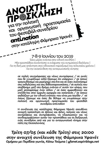 Ανοιχτή πρόσκληση για την πολιτική και οργανωτική προετοιμασία του anti.nation