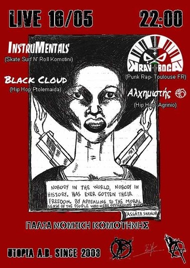 KRAV BOCA (Punk Rap- Toulouse France), InstruMentals (State Surf N'Roll - Komotini), Αλχημιστής (45) (Hip Hop- Agrinio), Black Cloud (Hip Hop- Ptolemaida) Στην παλιά νομική.