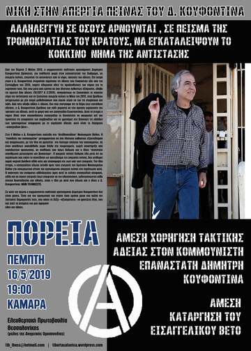 Πορεία αλληλεγγύης στον Δημήτρη Κουφοντίνα Πέμπτη 16/5 Καμάρα, στις 19.00