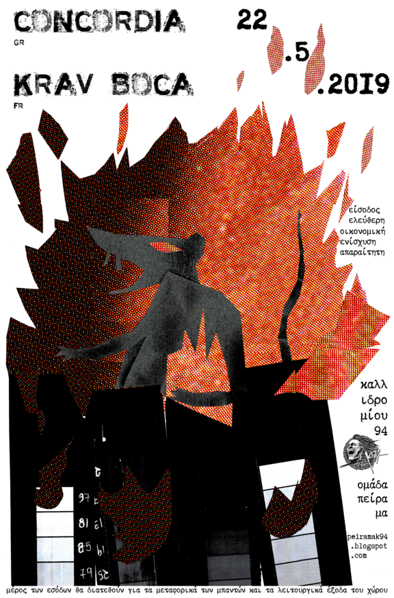 Αυτή την Τετάρτη υποδεχόμαστε στο υπόγειο τους Krav Boca από Γαλλία μαζί με τους δικούς μας Concordia.