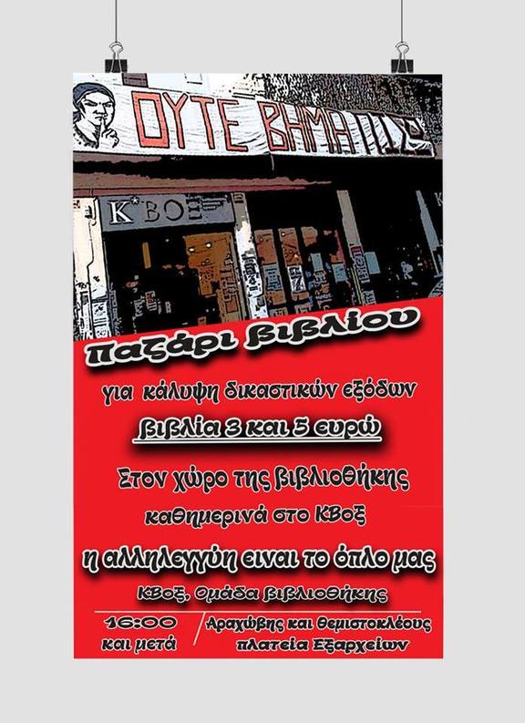 Στα πλαίσια στήριξης των συντρόφων και συντροφισσών του Ρουβίκωνα μετά τις κακουργηματικες διώξεις που ασκήθηκαν σε δύο άτομα για μπογιές στη Βουλή, η ομάδα βιβλιοθήκης οργανώνει παζάρι πολιτικών -και όχι μόνο- βιβλίων με τιμές 3 και 5 ευρώ.