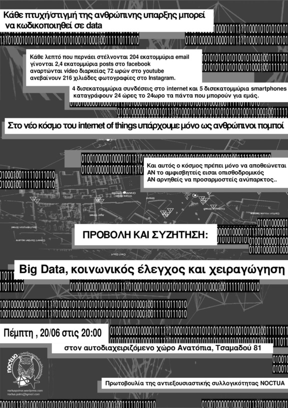 …στον αυτοδιαχειριζόμενο χώρο ΑΝΑΤόΠΙΑ με θέμα «big data, κοινωνικός έλεγχος και χειραγώγηση» από πρωτοβουλία από την αντιεξουσιαστική συλλογικότητα noctua.