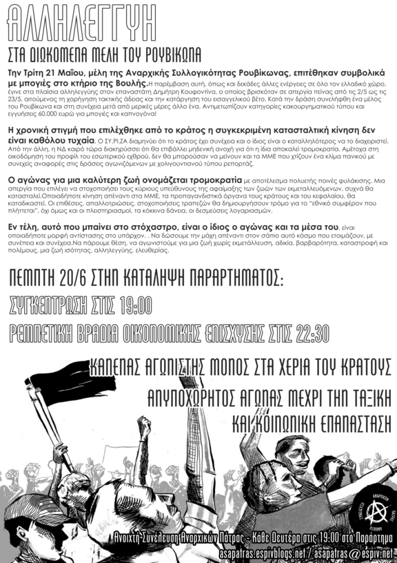 Ανοιχτή Συνέλευση Αναρχικών Πάτρας, κάθε Δευτέρα στις 19.00 στο Παράρτημα (Κορίνθου & Αράτου). asapatras.espivblogs.net / asapatras@espiv.net