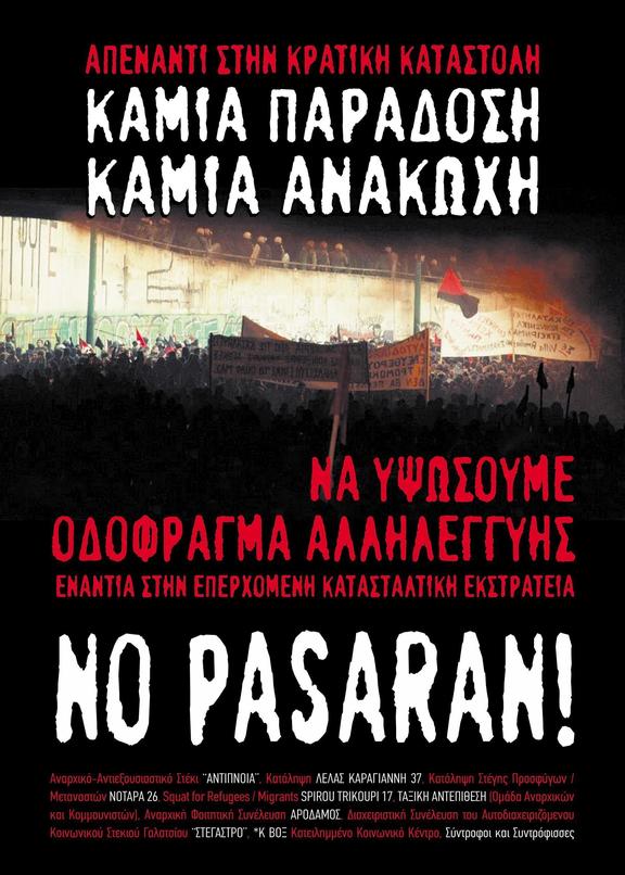 Αναρχικό - Αντιεξουσιαστικό Στέκι «ΑΝΤΙΠΝΟΙΑ», Κατάληψη ΛΕΛΑΣ ΚΑΡΑΓΙΑΝΝΗ 37, Κατάληψη Στέγης Προσφύγων /Μεταναστών ΝΟΤΑΡΑ 26, Squat for Refugees/Migrants SPIROU TRIKOUPI 17, ΤΑΞΙΚΗ ΑΝΤΕΠΙΘΕΣΗ (Ομάδα Αναρχικών και Κομμουνιστών), Αναρχική Φοιτητική Συνέλευση ΑΡΟΔΑΜΟΣ, Διαχειριστική Συνέλευση του Αυτοδιαχειριζόμενου Κοινωνικού Στεκιού Γαλατσίου «ΣΤΕΓΑΣΤΡΟ», Κ*ΒΟΞ Κατειλημμένο Κοινωνικό Κέντρο, Σύντροφοι και Συντρόφισσες