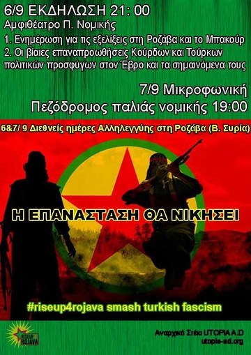 Στις 24/08 πραγματοποιήσαμε εκ νέου αφισοκόλληση για το 2ήμερο αλληλεγγύης της επανάστασης στη Ροζάβα και καλούμε