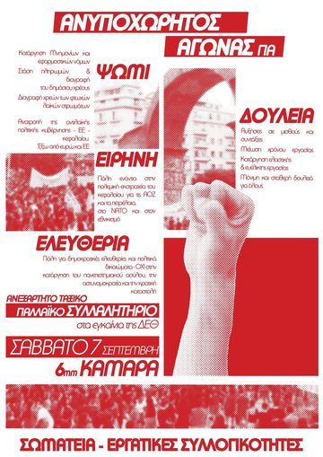 ΔΕΘ: κάλεσμα στη συγκέντρωση και διαδήλωση του Σαββάτου 7/9