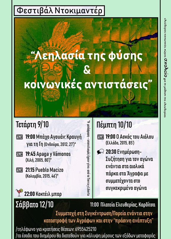 Προβολή στα πλαίσια του Διήμερου Φεστιβάλ Ντοκυμαντέρ με θέμα: «Λεηλασία της φύσης και κοινωνικές αντιστάσεις».