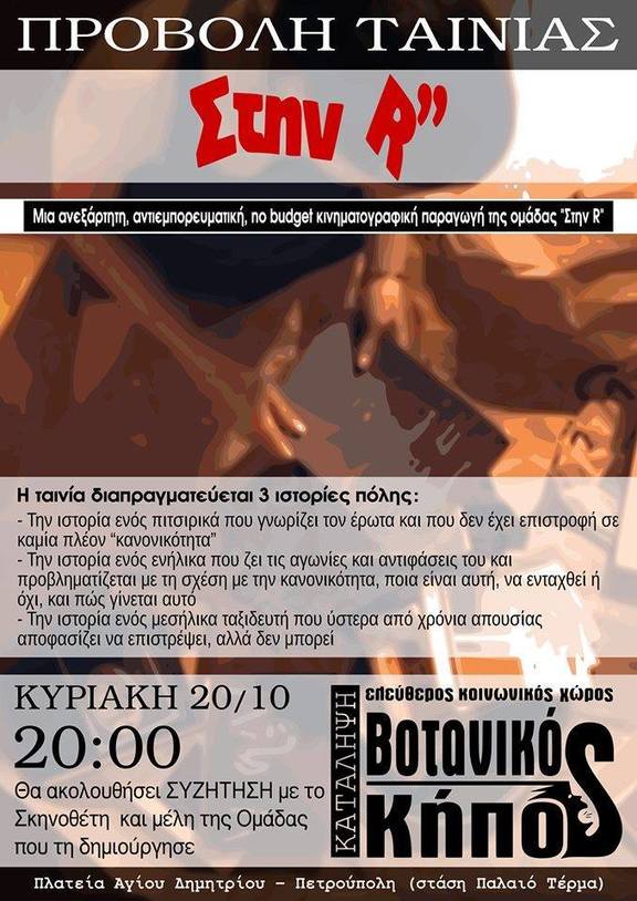 Προβολή ταινίας ''Στην R'' και Συζήτηση με Σκηνοθέτη - ομάδα