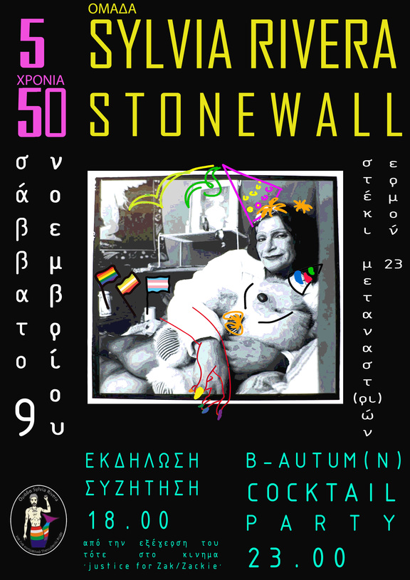 Στις 9 Νοεμβρίου ακολουθούμε τα rainbow φύλλα που πέφτουν από τα δέντρα και... χωρίς φθινοπωρινή διάθεση παρτάρουμε στο Στέκι Μεταναστ(ρι)ών, γιορτάζοντας τα 5 χρόνια από την ίδρυση της Sylvia Rivera.