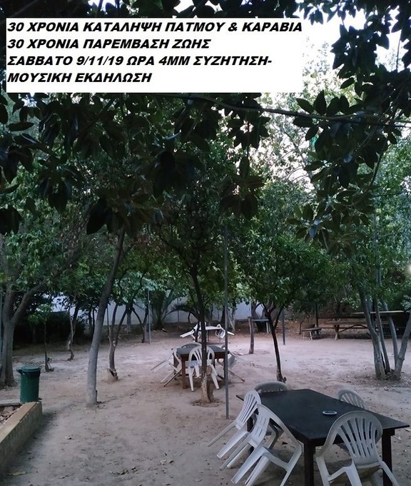 Συλλογικότητες και κάτοικοι της περιοχής, που πιστεύουν στην αυτοοργάνωση, αυτοδιάθεση και στην σύνδεση της κοινωνίας με την αλληλεγγύη και τον πολιτισμό, συναντιούνται στο χώρο της ΚΑΤΑΛΗΨΗ & ΠΑΤΜΟΥ ΚΑΙ ΚΑΡΑΒΙΑ , διαμορφώνοντας με την άποψη τους και την έμπρακτη συμπαράσταση τους την συνέχεια της παρουσίας μας και όχι μόνο, στο χώρο της ΚΑΤΑΛΗΨΗΣ.
