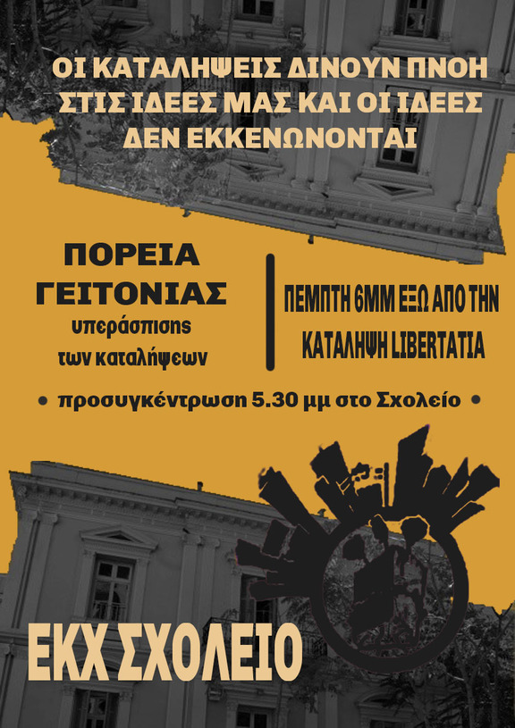 Πορεία γειτονιάς για την υπεράσπιση των καταλήψεων, των κοινωνικών χώρων και των εστιών αγώνα.