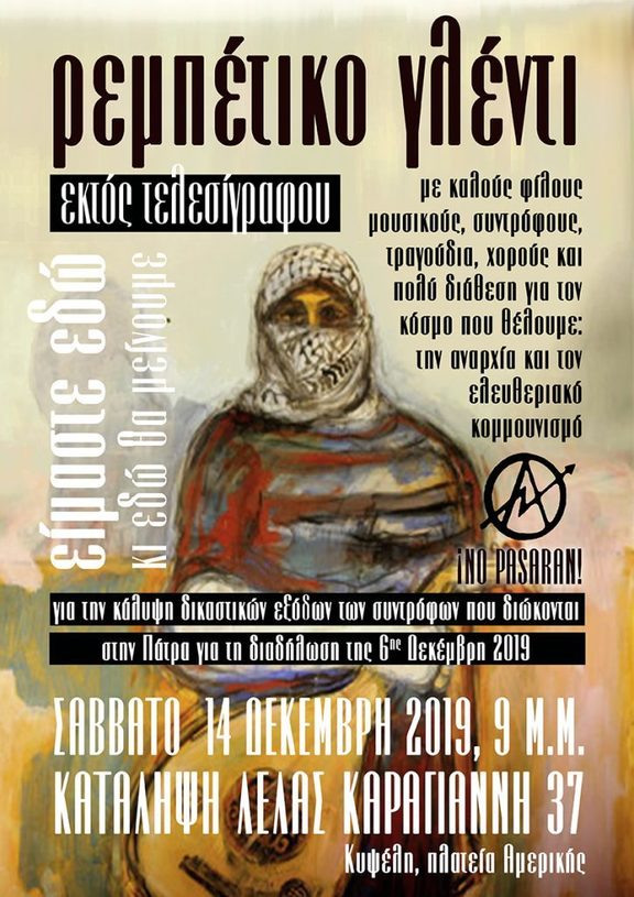 για την κάλυψη δικαστικών εξόδων των συντρόφων που διώκονται στην Πάτρα για την διαδήλωση της 6ης Δεκέμβρη 2019