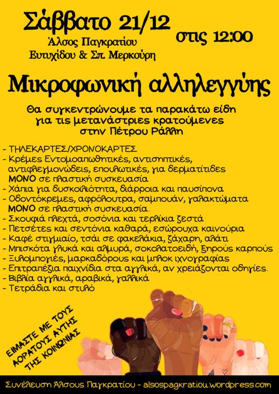 Είμαστε μαζί με τους ξεχασμένους, από την «πολιτισμένη» Ελλάδα και Ευρώπη, ανθρώπους όπως οι κρατούμενες μετανάστριες στο κολαστήριο των κρατητηρίων της Πέτρου Ράλλη.
