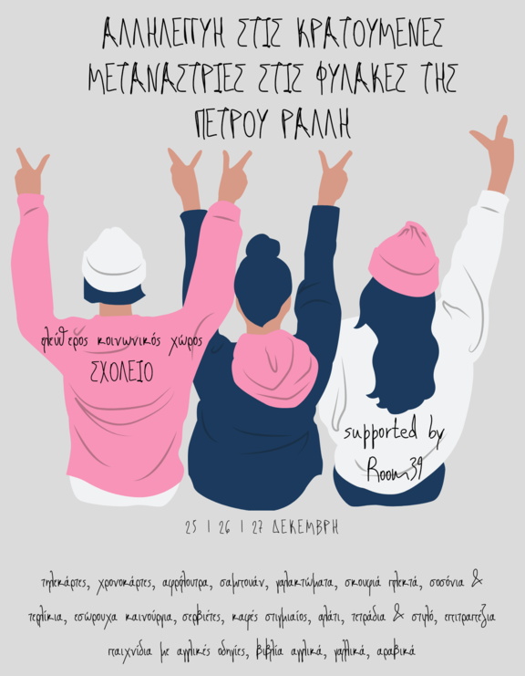 Δείχνουμε την αλληλεγγύη μας στις κρατούμενες μετανάστριες της Πέτρου Ράλλη συλλέγοντας στον εκχ Σχολείο: