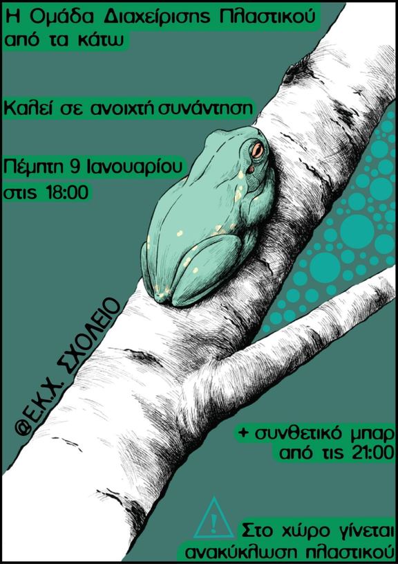 Παρουσίαση της ομάδας διαχείρισης και ανακύκλωσης πλαστικού από τα κάτω του Ε.Κ.Χ. "Σχολείο", του πρότζεκτ της και ευρύτερη συζήτηση γύρω από την ανακύκλωση από τα κάτω.