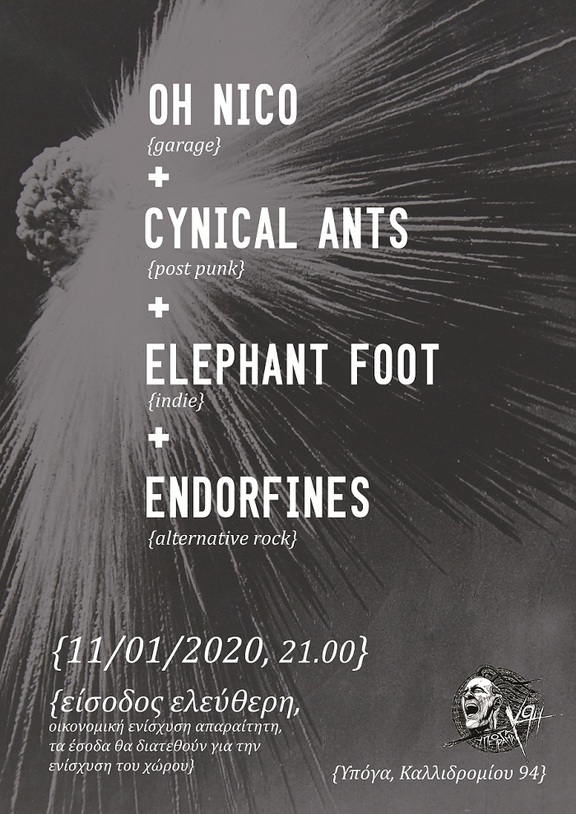 Αυτό το Σάββατο, όμορφη φασαρία από Cynical Ants, Elephant Foot, Ενδορφίνες και Oh Nico.