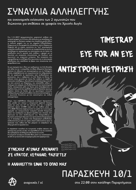 Συναυλία αλληλεγγύης στους 2 αγωνιστές που διώκονται για επιθέσεις σε γραφεία της ΧΑ