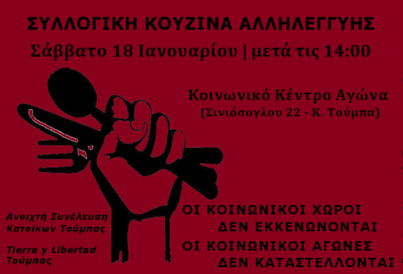 Κοινωνικό Κέντρο Αγώνα Τούμπας Στέκι Προοδευτικής Έκρηξης Τούμπας (κατάληψη Σινιόσογλου 22, Κάτω Τούμπα) λεωφορεία 10,58: στάση "Γραφεία ΟΑΣΘ" λεωφορείο 11: στάση "Μπότσαρη"