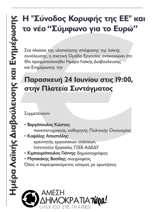 Ημέρα Λαϊκής Διαβούλευσης για το Σύμφωνο του Ευρώ