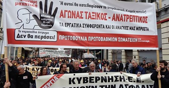 Καλούμε όλους τους εργαζόμενους σε όλους τους χώρους δουλειάς σε συντονισμό και κοινή δράση μέσα από τα ταξικά, αγωνιστικά πρωτοβάθμια σωματεία σε δημόσιο και ιδιωτικό τομέα, σε σύγκρουση με τα όρια που βάζει ο κυβερνητικός, εργοδοτικός συνδικαλισμός. Ενάντια στην ηγεσία της ΓΣΕΕ που συμφωνεί με τον αντιασφαλιστικό νόμο της ΝΔ, καλεί σε απεργοσπασία και προετοιμάζεται για μονοήμερο συνέδριο, με την φύλαξη των ΜΑΤ.