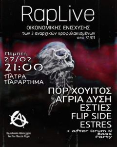 Live και μετά party οικονομικής ενίσχυσης των προσφατα συλληφθέντων και προφυλακιστεων αγωνιστών και αγωνιστριων . Κανενας μονος , η αλληλεγγύη είναι το όπλο μας!
