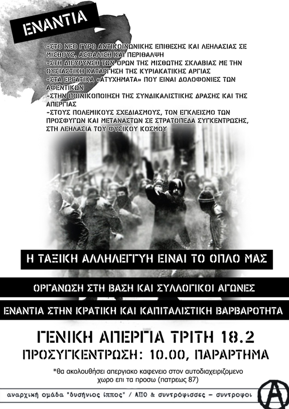 *θα ακολουθήσει απεργιακό καφενείο στον αυτοδιαχειριζόμενο χώρο Επί τα Πρόσω (Πατρέως 87)